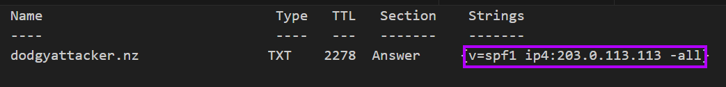 In the (not so) bad old days of problematic email SPAM back in the early 2000’s a security protocol was introduced called Sender Policy Framework (SPF). SPF allows orgs to add an entry to their domain’s public DNS records that enables mail-receiving systems to check to make sure the mail-sending system is allowed to send email for the domain in the email MAIL FROM address (everything to the right of the @). This was designed to stem the tide of email where scammers simply sent email saying it was from alice@engagesecurity.nz, when it absolutely wasn’t (called, spoofing the MAIL FROM)!